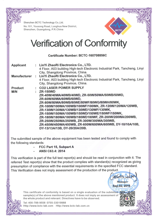• 山東朝日電子有限公司是一家從事CO2激光電源研發、生產、銷售于一體的專業廠家,主要產品為40W/50W/60W/80W/100W/120W/130W/150W/200W/300W/400W二氧化碳激光電源。公司自2003年成立以來,始終堅持“以質量求生存,靠信譽謀發展”的理念.公司擁有業界高素質管理人才和技術精英,所有原材料都經過嚴格細致的檢測檢驗,生產流程嚴格貫徹執行ISO9001質量管理體系。卓越的品質、合理的價格和全體員工的不懈努力使我們的公司已穩步走在行業的前列。